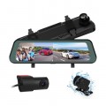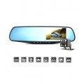 A camera is attached to the rear of the vehicle and displays images on a LCD monitor built into the rearview mirror.